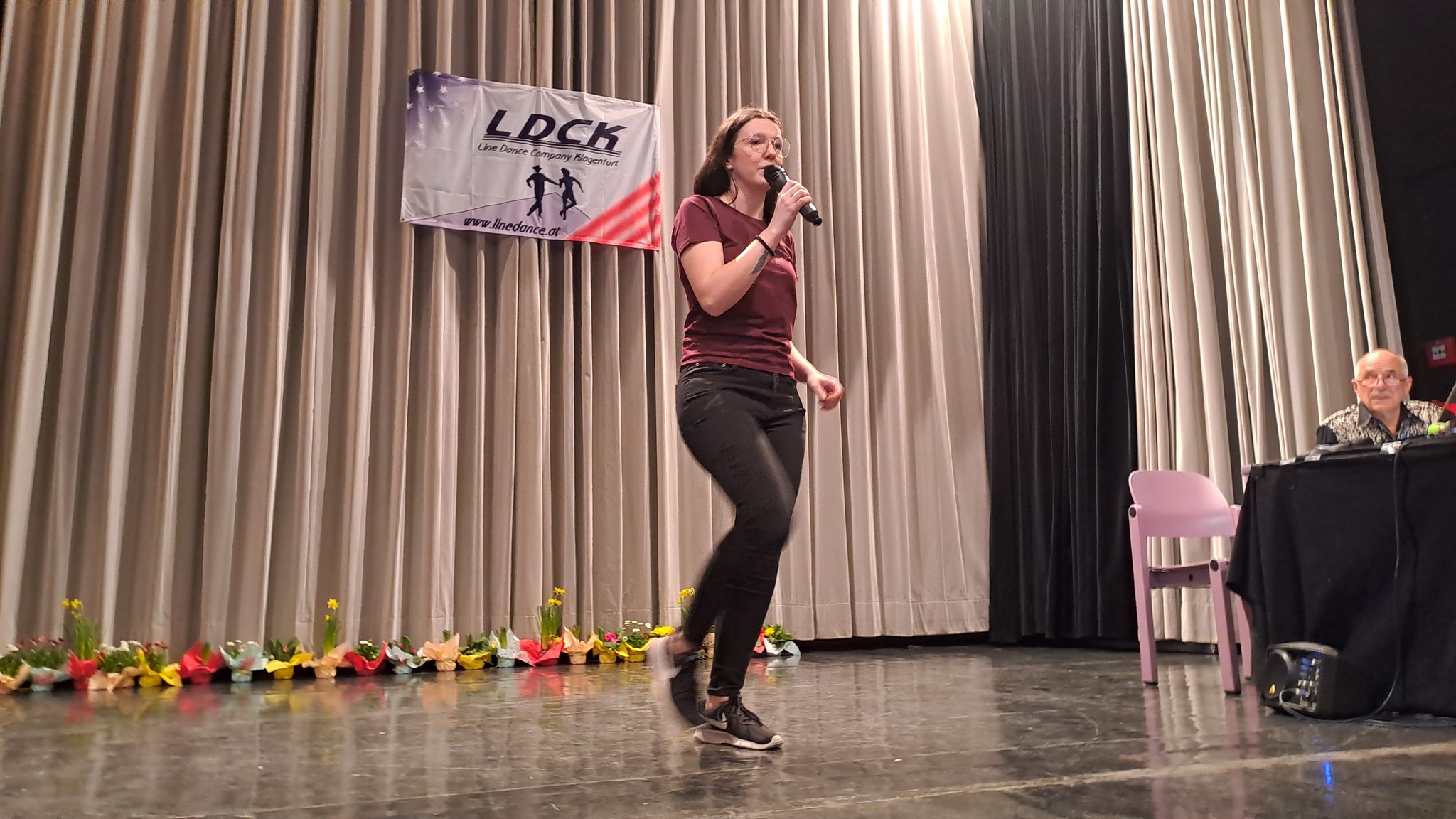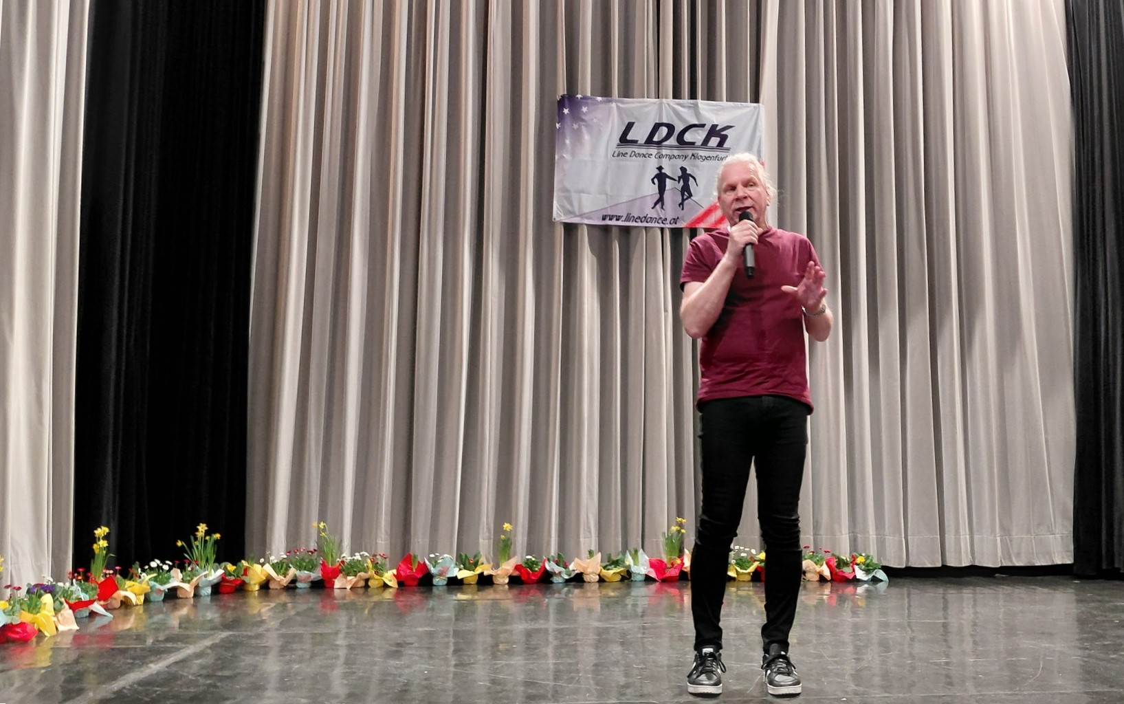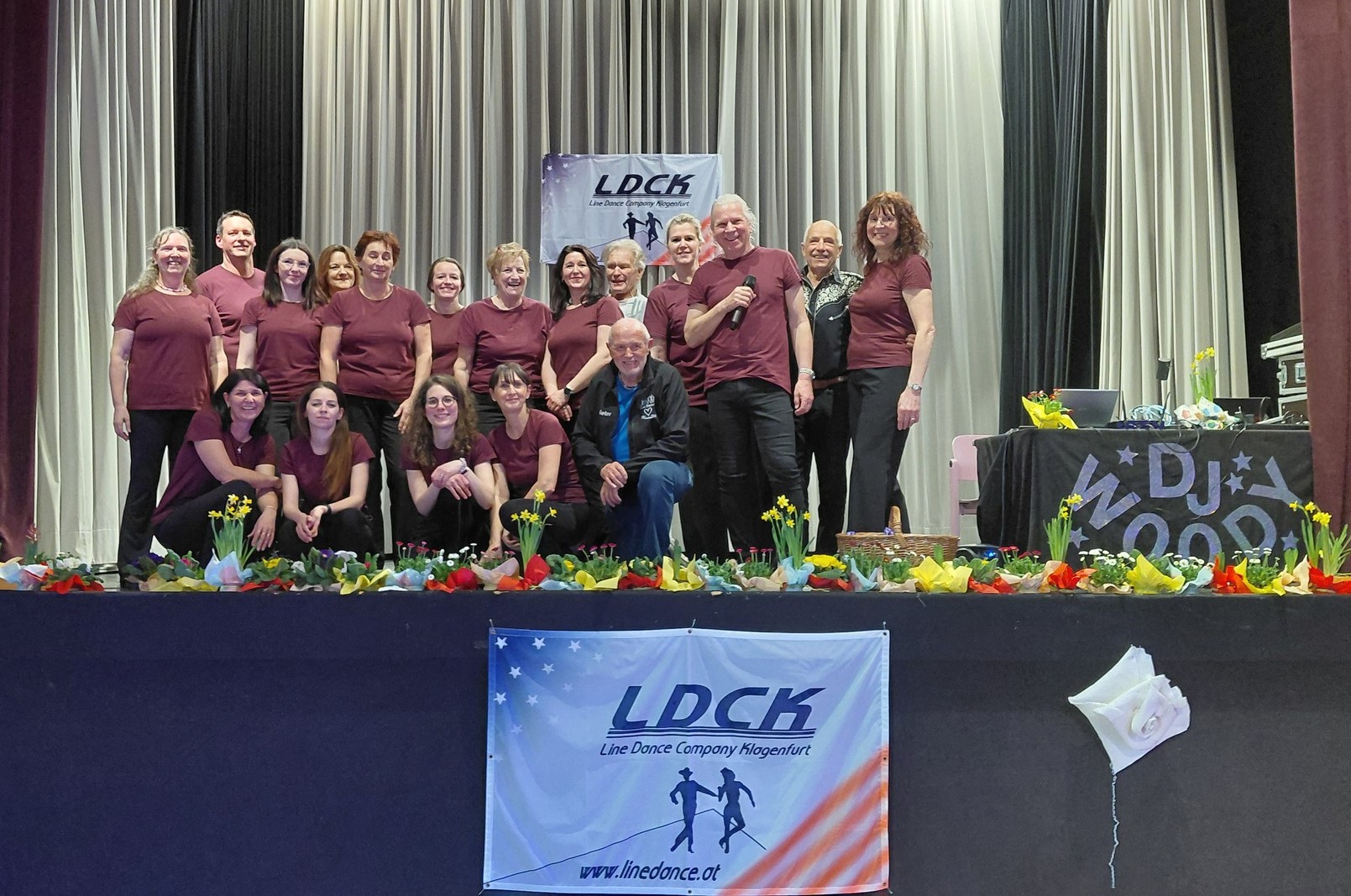 Die Abendshow wurde von den "Linera Dance" aus Slowenien (Gruppe von Marjana) eröffnet, die uns eine tolle, fetzige und mitreißende Line Dance Show zeigten. Danach gab es zum ersten Mal in Kärnten die "United Carinthian Line Dancer" zu sehen. Diese Gruppe vereinigt Tänzer von verschiedenen Kärntner Vereinen. Unter der Leitung von Woody entstand eine schwungvolle und lustige Choreographie, die sich kurz "Cool Cat-Rock'nRoll-Jean Pierre-Surfin' USA-Hintermoser Kathi-Arriba Los Manos" nennt.